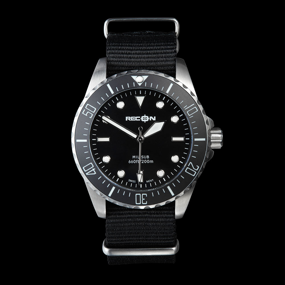 The Rolex “Milsub” was a tweaked version of the civiliangrade Submariner. Today these "Milsubs" sell for $100,000+. Closer to $200,000 actually. Recon has created the perfect “MilSub” homage. It’s so identical, it even fools serious watch collectors! They say, “It’s too accurate! “Virtually…Identical weight…Identical materials…Identical proportions. Now (only a few left) you can add this watch to your collection for 60% less than everyone else has to pay.